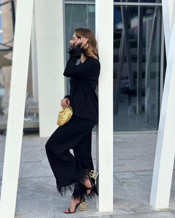 An expression of understated luxury. The Gala dress collection is defined by fluid silhouettes breathable fabrics and relaxed tailoring. Designed in full length and elevated ostrich feathers for an accent of luxury. Perfect for elegant brunches, family and work gatherings and Ramadan evenings, these dresses are crafted for moments that call for sophistication, grace and timeless appeal.