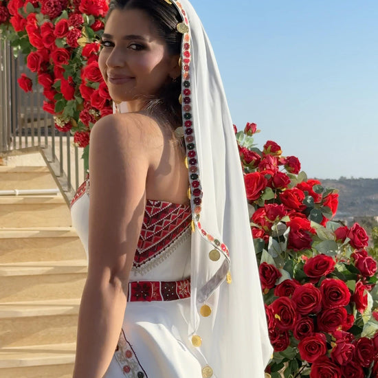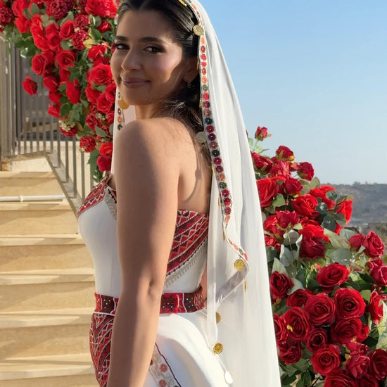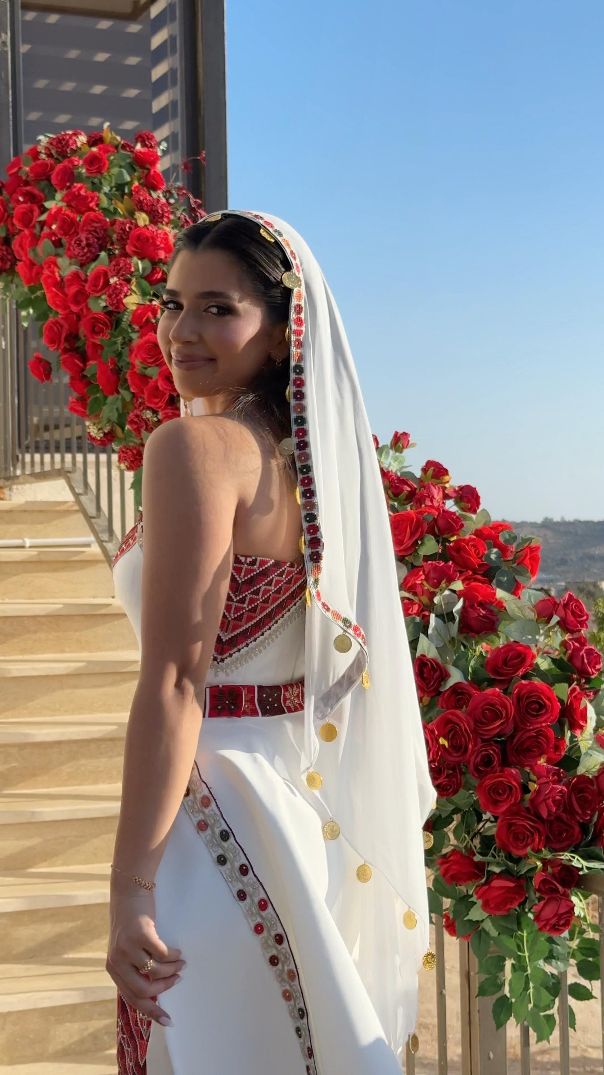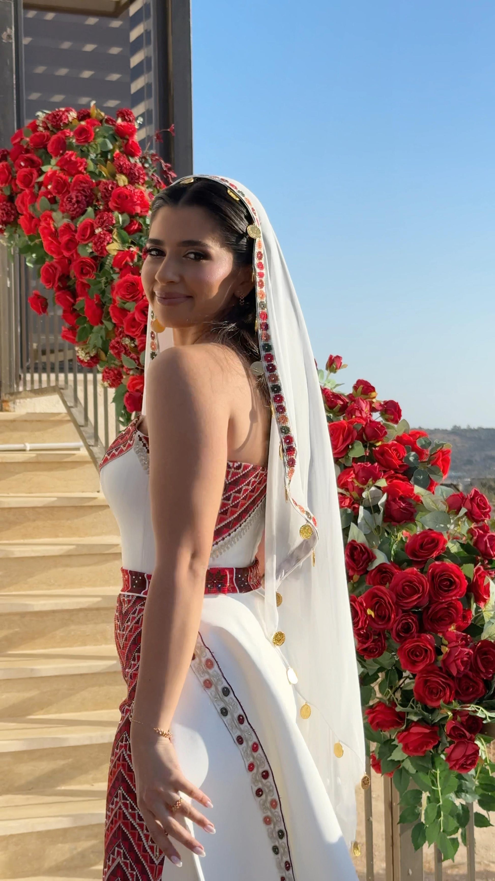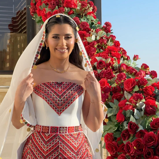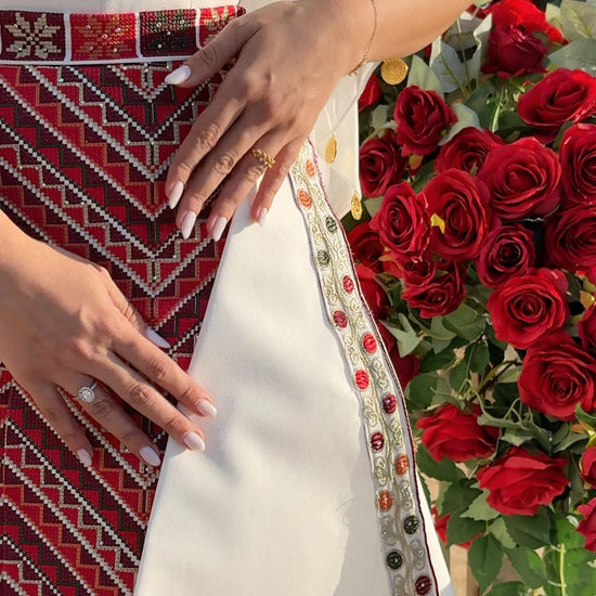 This Palestinian Henna Dress is also available in different embroidery patterns. Contact us via Whatsapp to inquire about other available patterns.