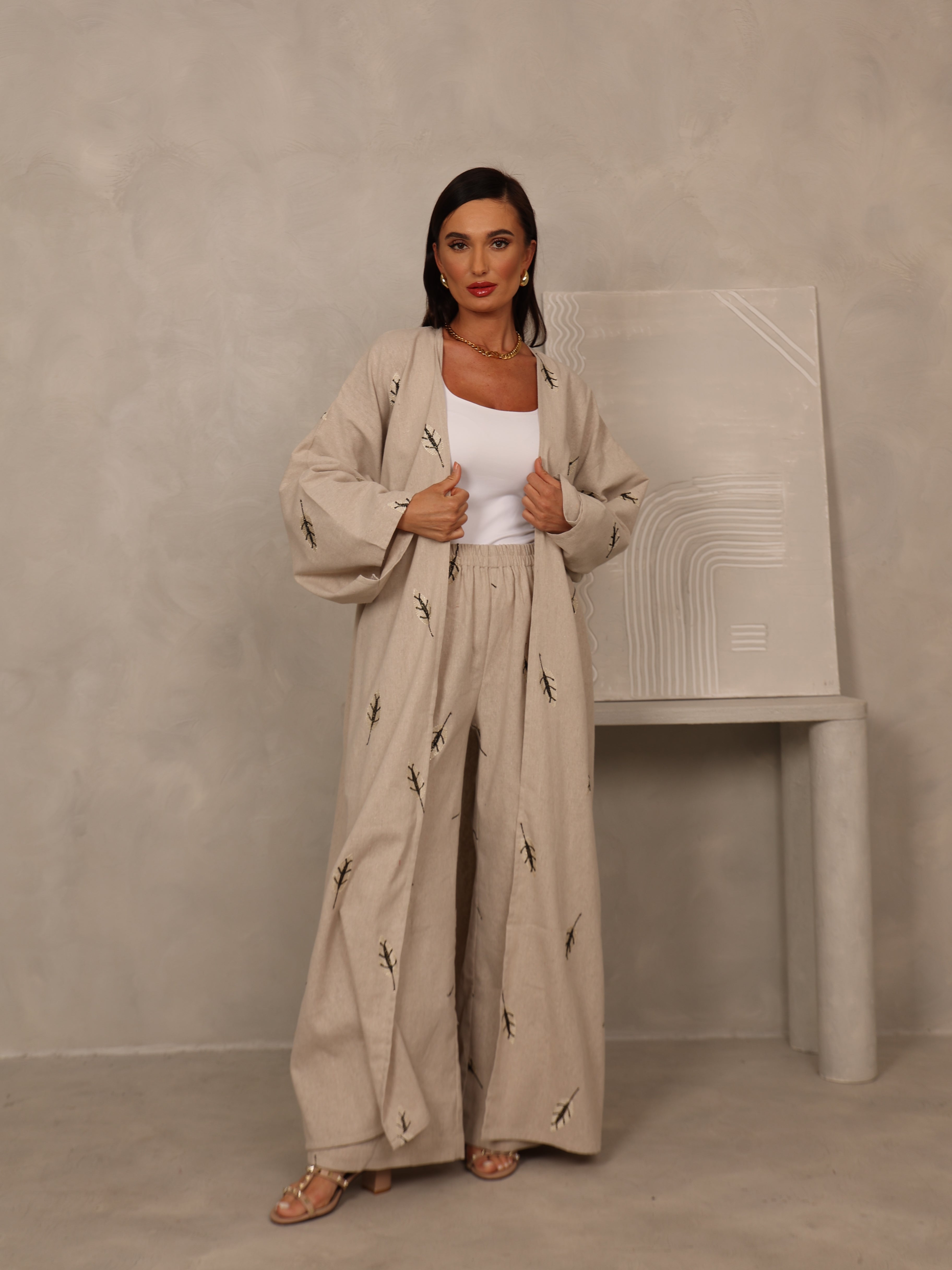 EMBROIDERED ABAYA & PANTS SET - BLACK