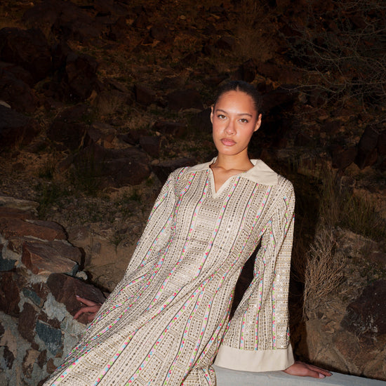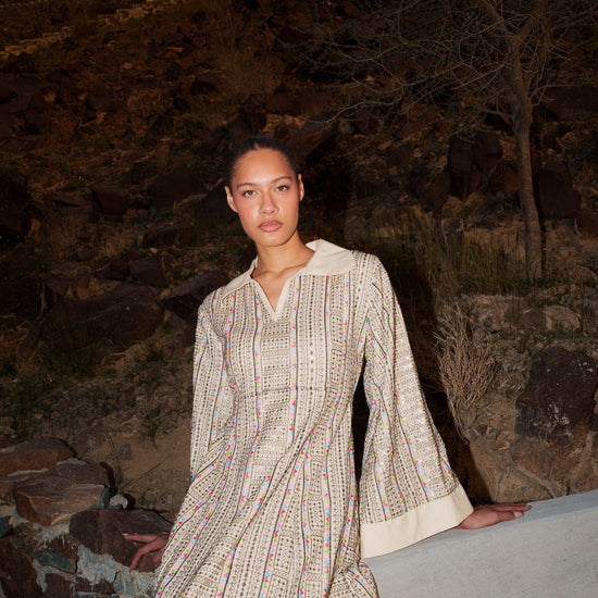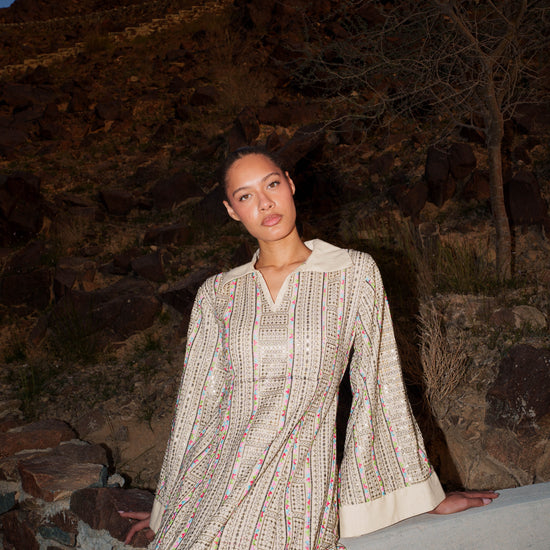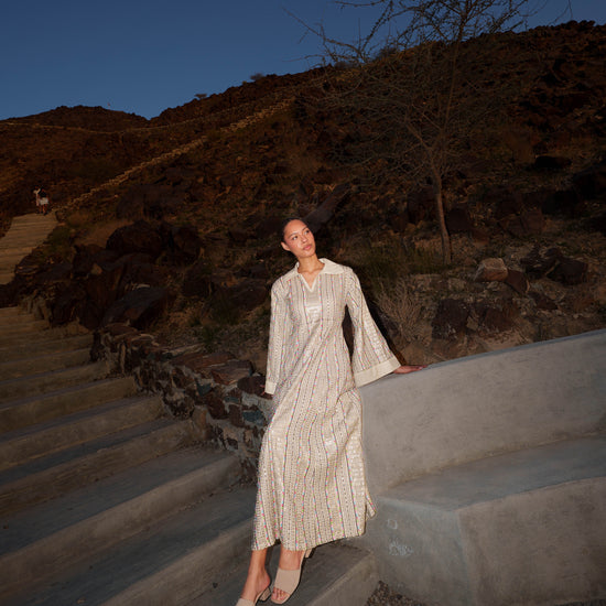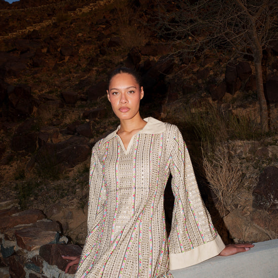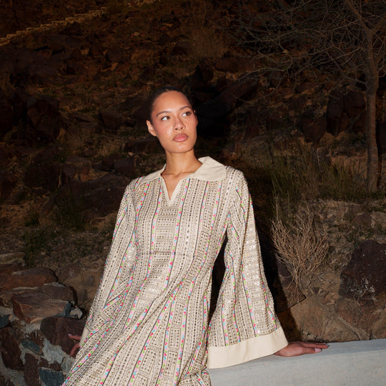 Embroidered Kaftan Dress - Beige