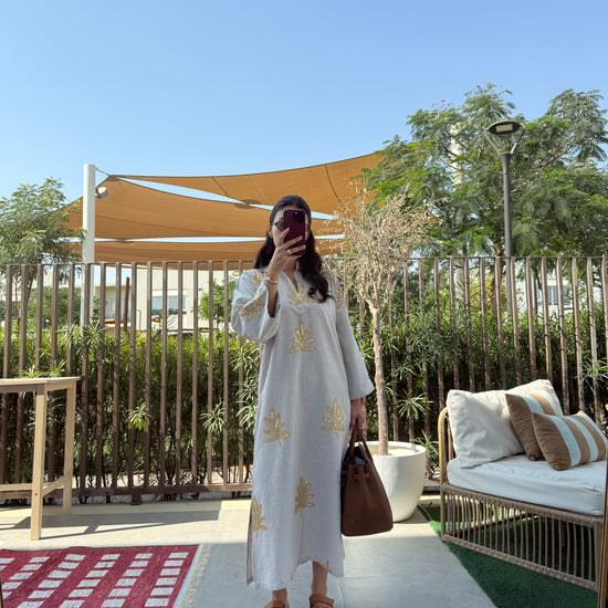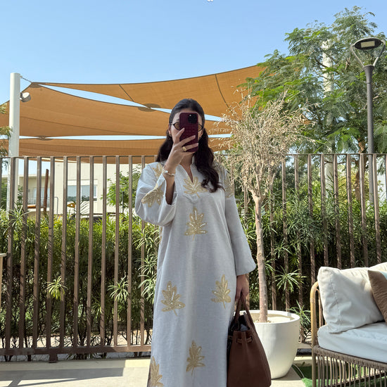 EMBROIDERED KAFTAN DRESS - GOLD