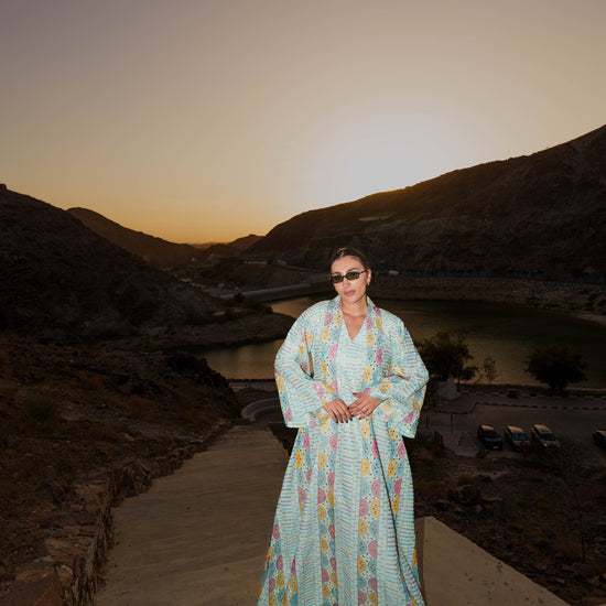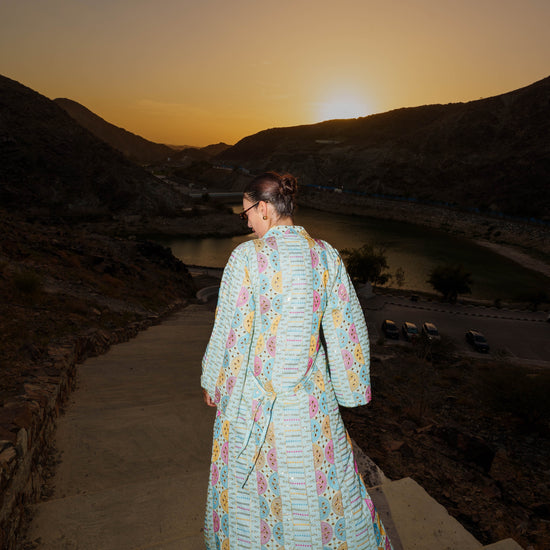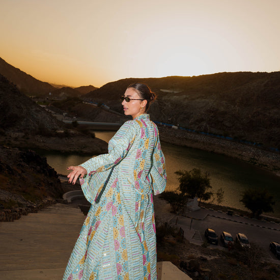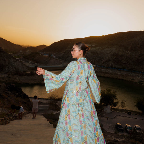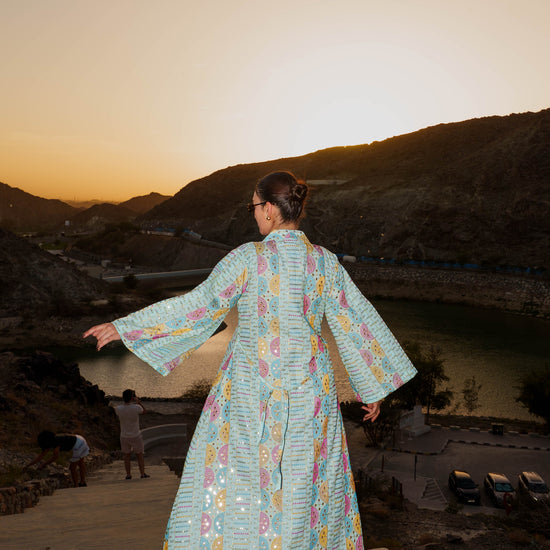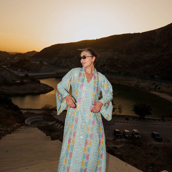 Embroidered Kaftan Dress - Light Turquoise