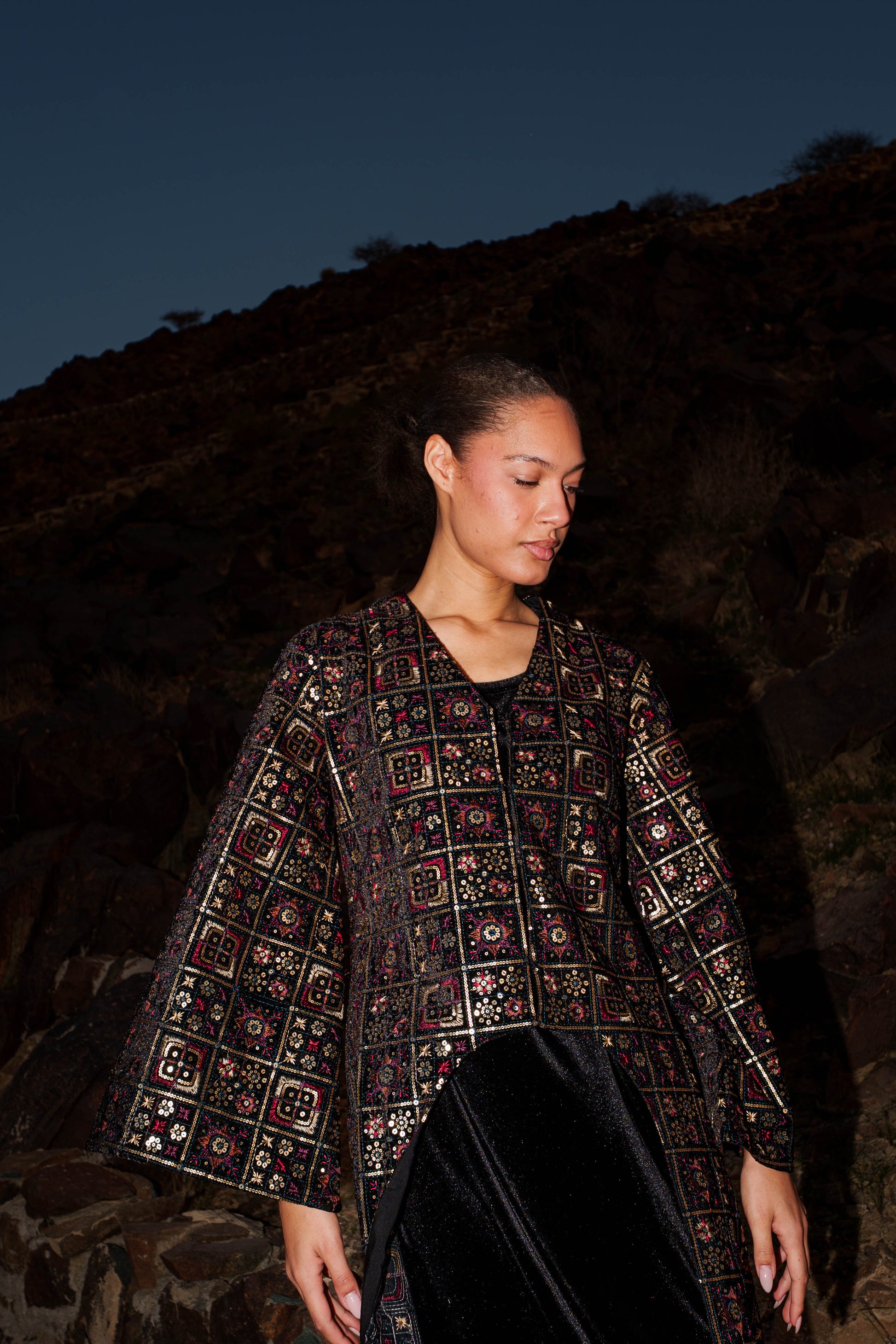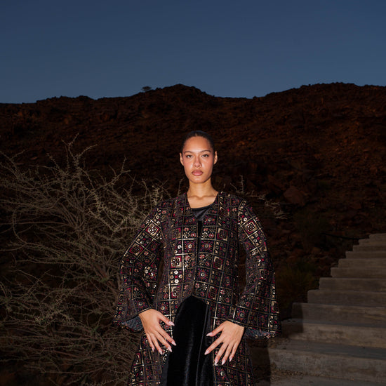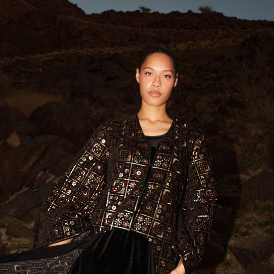 Kaftan Vest - Embroidered Black Velvet