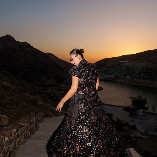 Kaftan Vest - Embroidered Black Velvet
