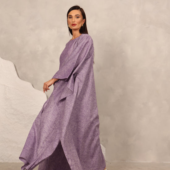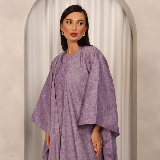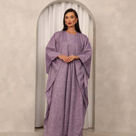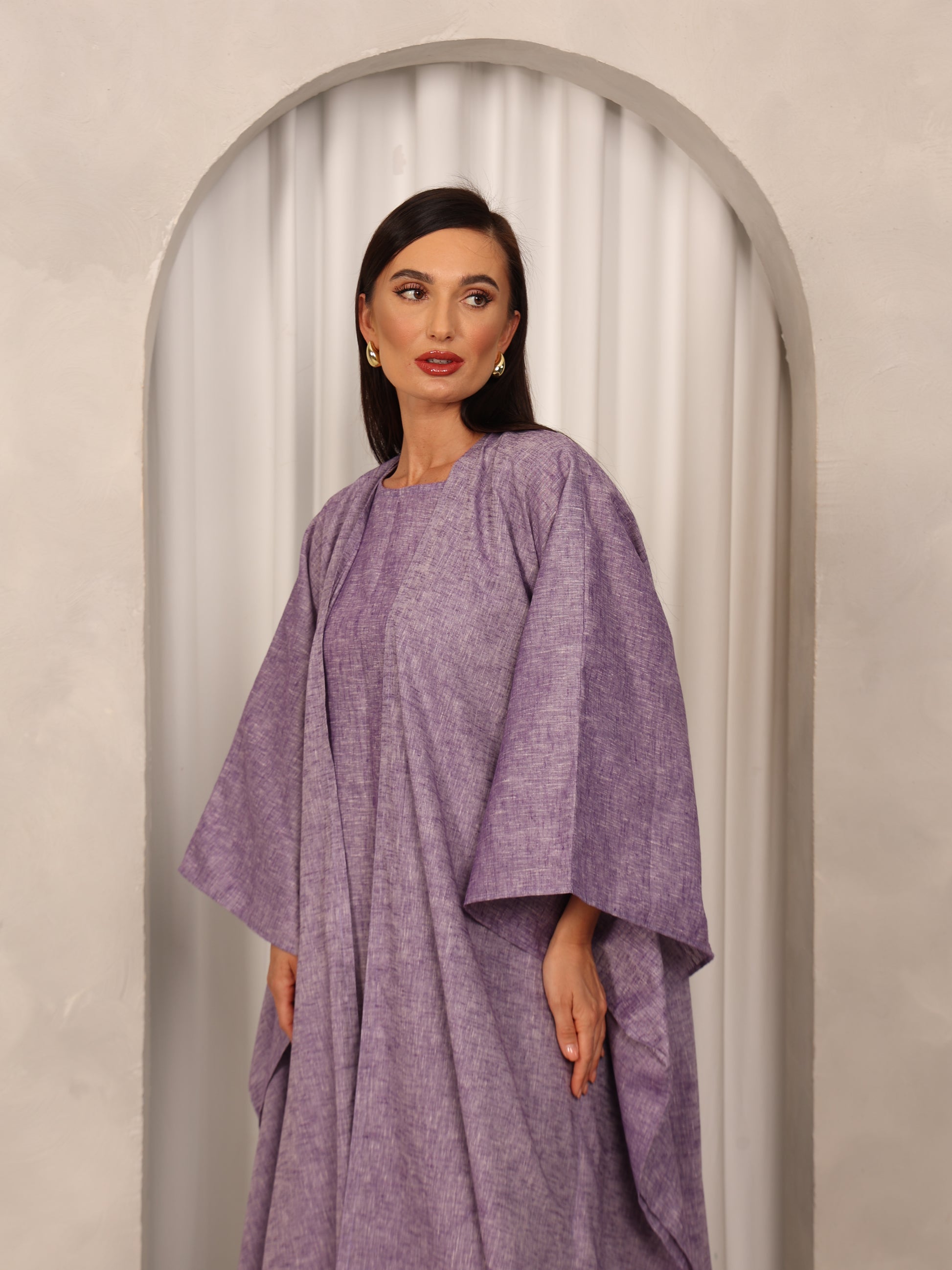 LINEN KAFTAN & INNER DRESS SET - PURPLE