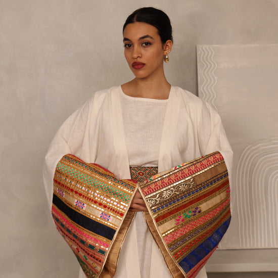 STATEMENT SLEEVES KAFTAN & INNER DRESS - OFF WHITE